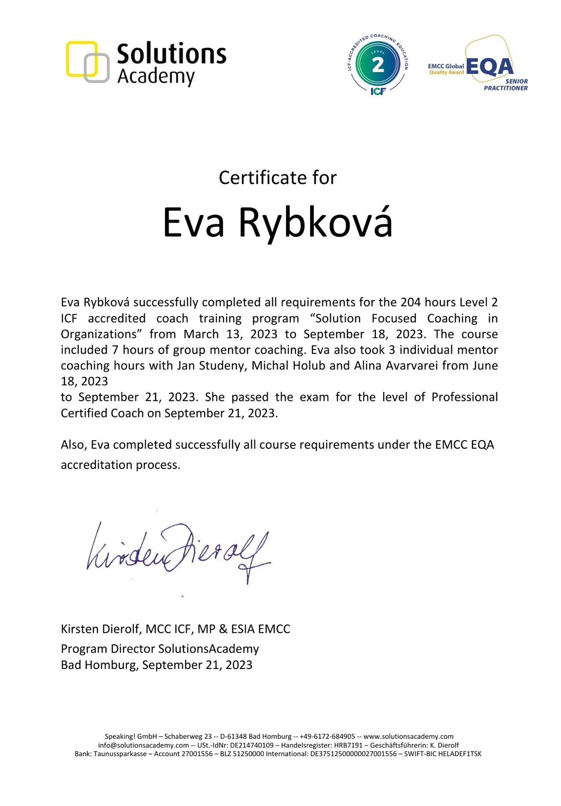 | Coaching in Organisations | Solutions Academy | 204 | ICF ACTP | 2023 | Náhled |