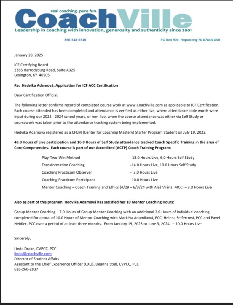 | Život jako hra | Coachville | 74 | ICF ACSTH | 2024 | Náhled |