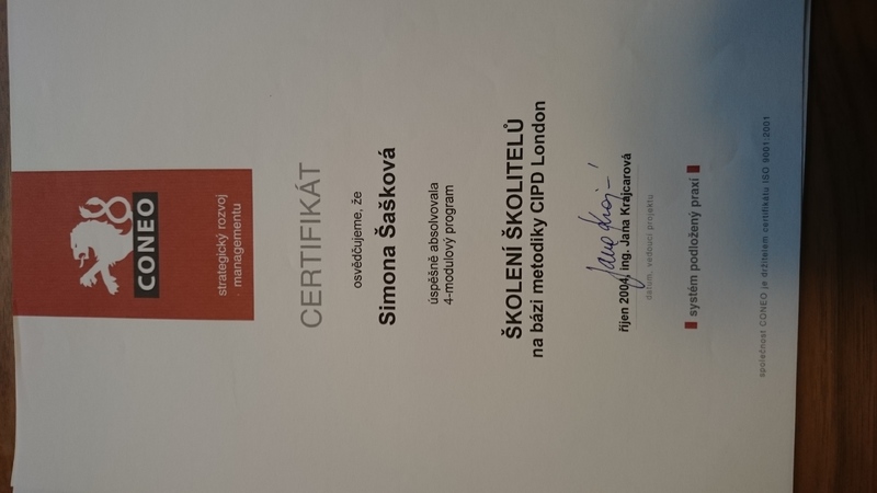 Název Vzdělávací instituce Hodiny Typ tréninku Rok ukončení Certifikát