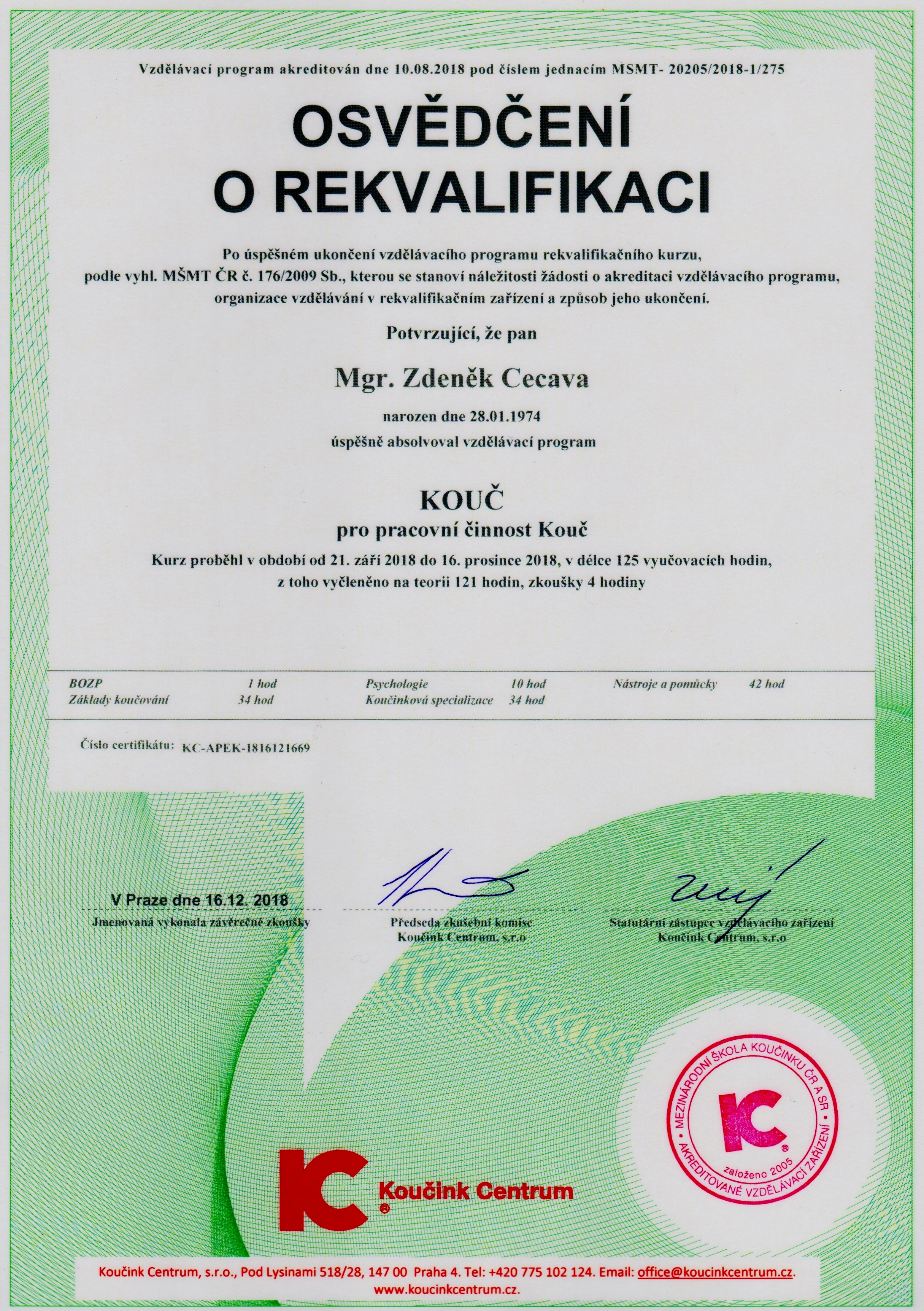 Před sebou máte kouče, který rád naslouchá lidem a dokáže na základě rozličných certifikovaných výcviků a tréninků používat koučovací metody, které pomáhají lidem při dosažení jejich cílů. Mám více než 25 letou praxi v nadnárodních korporacích, kde jsem se naučil vnímat potřeby konkrétních lidí i firem. Vedu nadnárodní tým specialistů, který vyžaduje specifický přístup ke každému členu týmu. Pečlivě si hlídám počet klientů, se kterými mám najednou navázanou spolupráci a to proto, abych mohl všem nabídnout kvalitní služby.