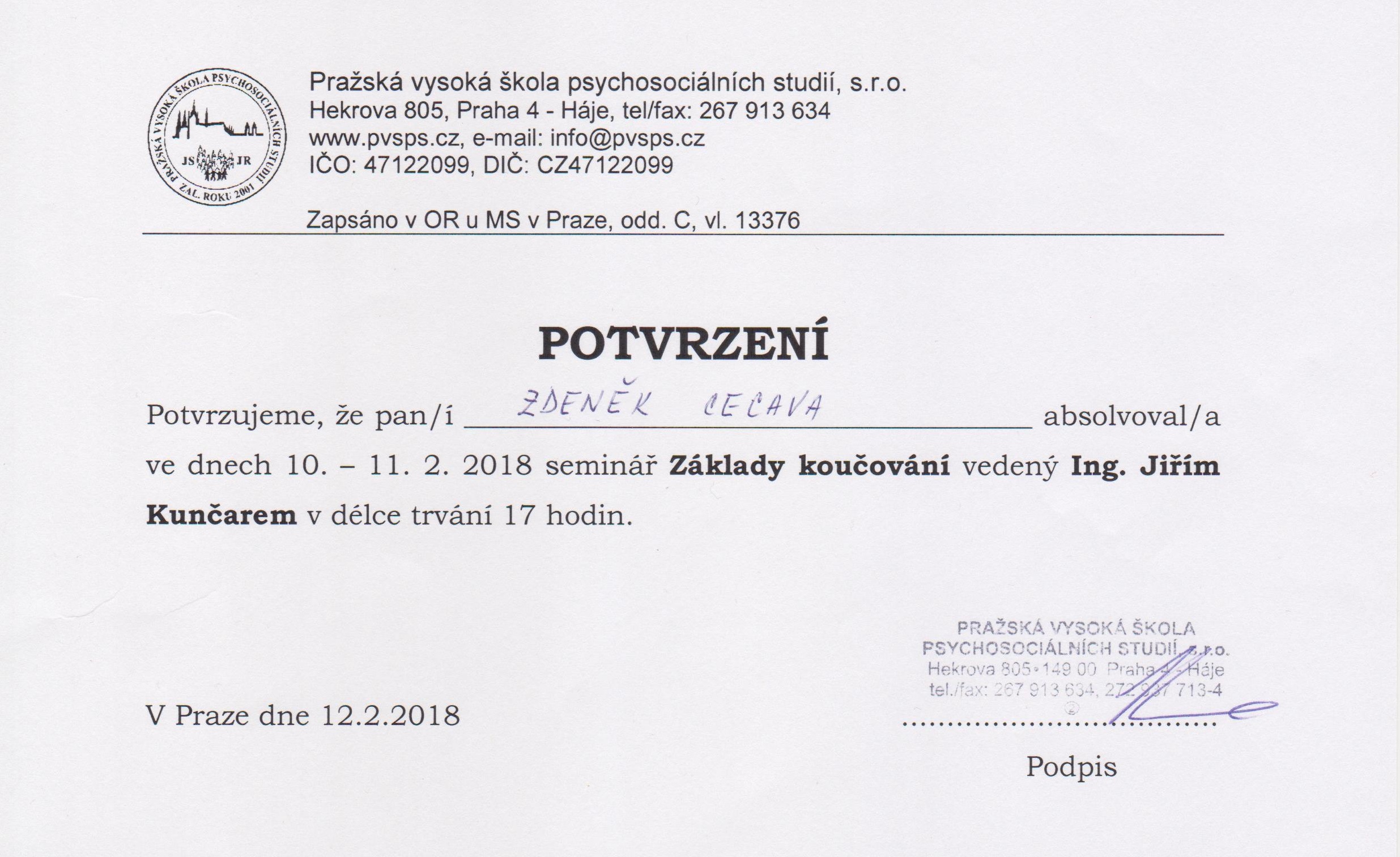 Seminář Základy koučování Pražská vysoká škola psychosociálních studií (PVSPS) 17 Bez ICF akreditace 2018 Náhled