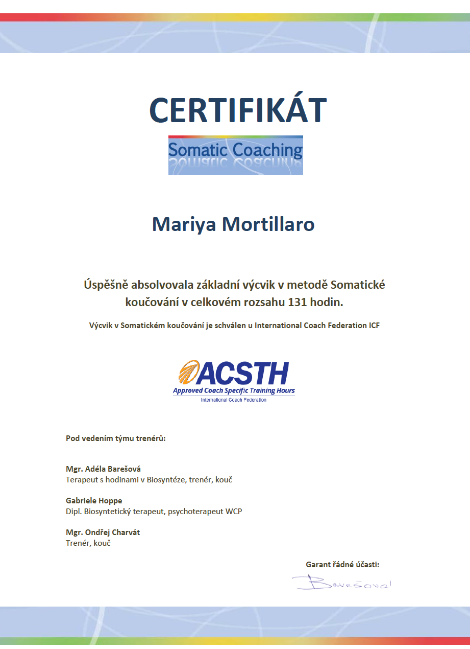 Výcvik v metodě Somatické koučovaní Somatické koučování, s.r.o. 131 ICF ACSTH 2019 Náhled
