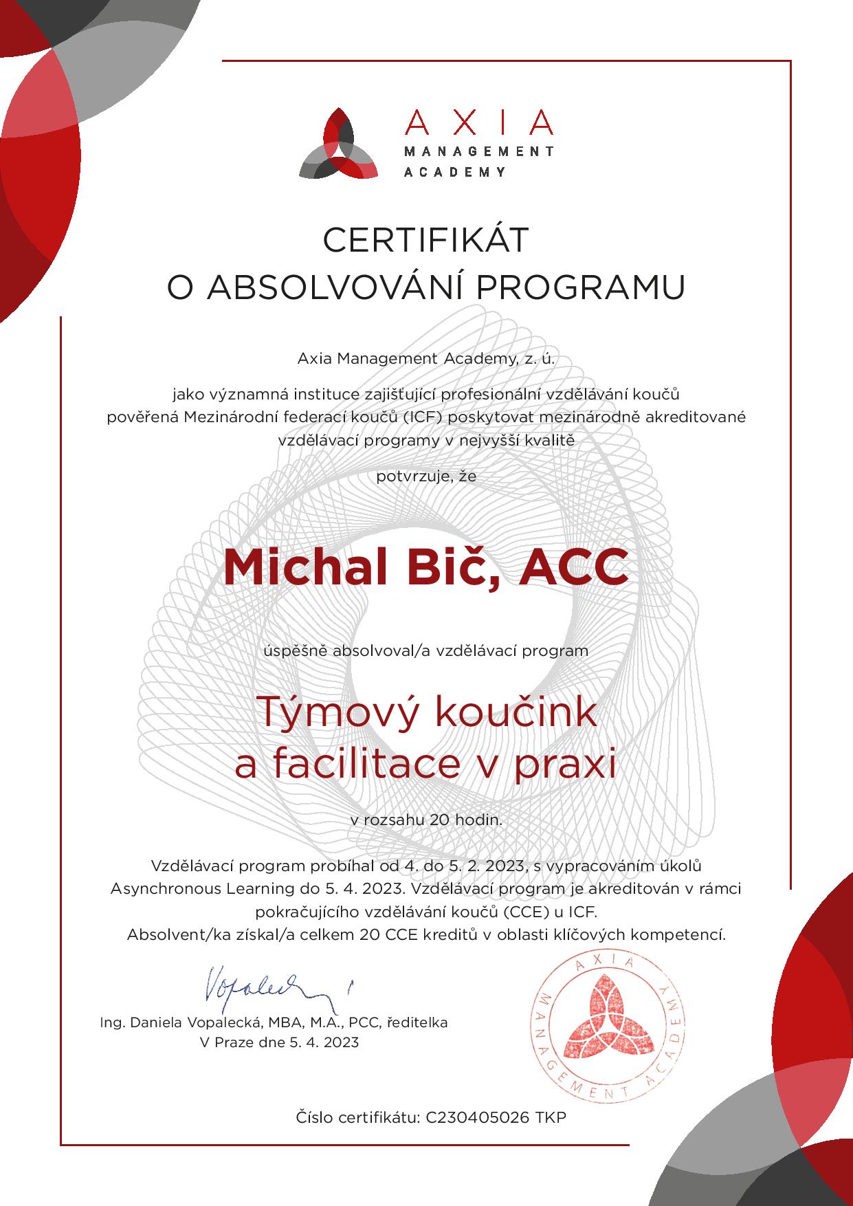 | Axia - Profesional Coaching - Level 2 | Axia Management Academy, z. ú. | 16 | ICF ACTP | 2024 | Náhled |