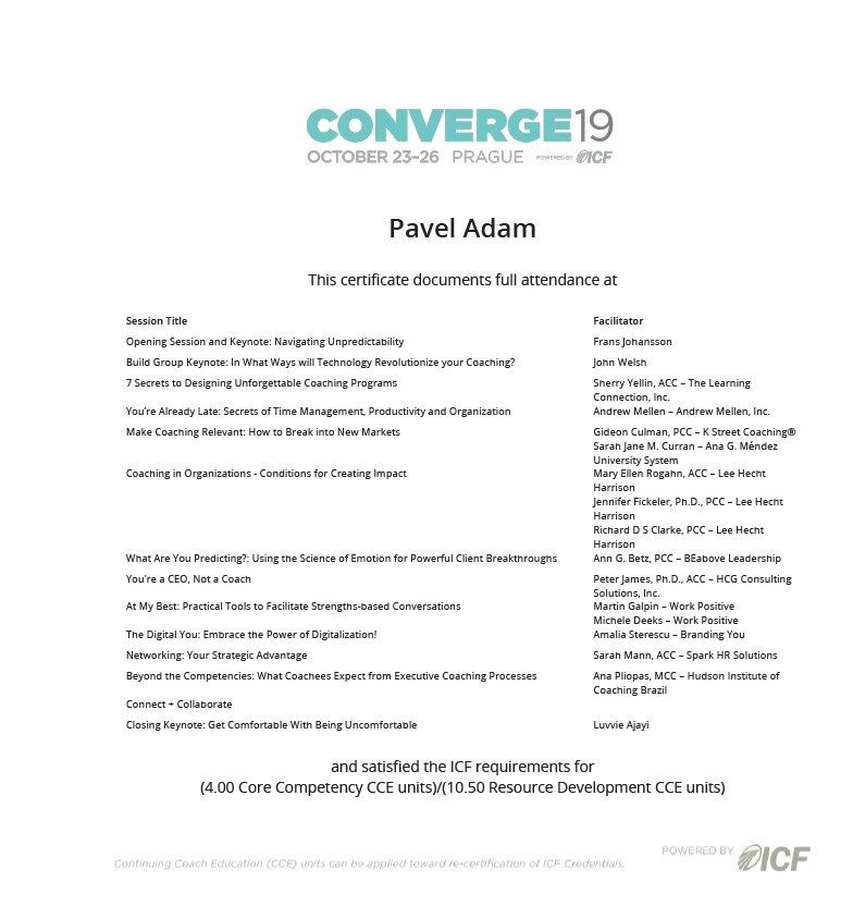 | Converge Global Coaching Conference | ICF | 14 | ICF CCEU | 2019 | Náhled |