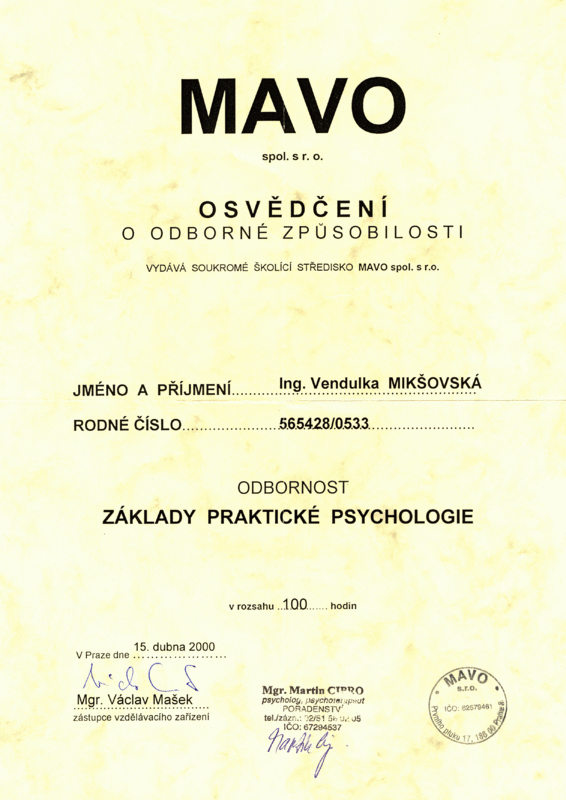 | Základy praktické psychologie | MAVO | 100 | Bez ICF akreditace | 2000 | Náhled |